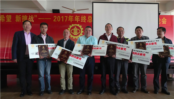 為了增強公司的凝聚力,表彰先進,樹立楷模,傳遞正能量,公司決定評選和表彰2017年度優秀工廠、特殊貢獻先進個人、優秀員工和技術標兵。獲獎的工廠廠長分別向與會者分享了成功經驗。